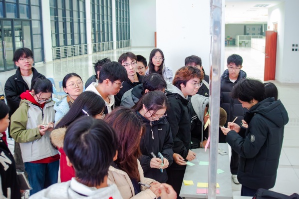 活动现场秩序井然,氛围浓厚。精心选取《宗师列传》中苏轼、苏辙相关经典影视片段进行播放,生动再现了“二苏”的文人风骨与家国情怀,让同学们在光影流转间沉浸式感受传统文化的魅力。观影结束后,现场观众踊跃分享观后感,结合自身感悟畅谈对经典文化的理解,思想的火花在交流中碰撞。随后的“知识问答”互动环节将活动气氛推向高潮,题目围绕影视内容及传统文化常识展开,同学们积极抢答、沉着应答,在轻松愉悦的氛围中拓宽了文化知识面。主题留言区内,同学们纷纷提笔,将观影感悟与生活思考落于笔端,字里行间满是对传统文化的热爱与传承之志。