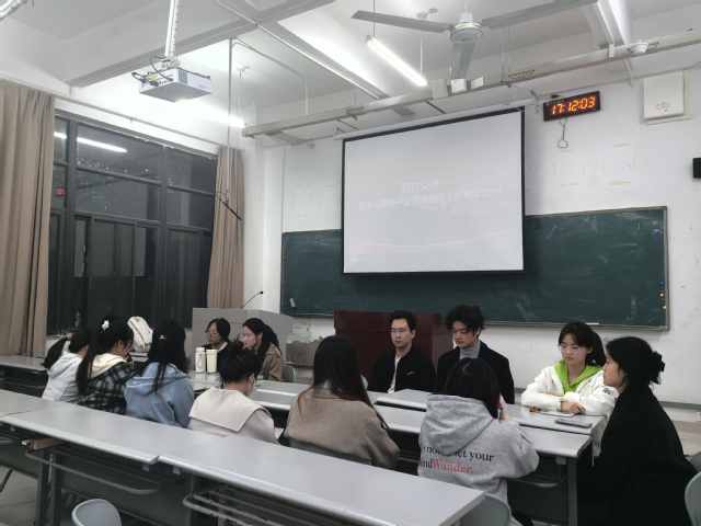 在研讨交流环节,学员们围绕“在多元思潮中坚定理想信念的青年应对”展开深入讨论。大家结合专业背景与自身学习经历,探讨了在信息纷繁、价值多元的当代社会,青年学生如何增强政治辨别力、站稳政治立场、筑牢信仰根基。有学员认为,理想信念不是抽象的口号,而应融入专业学习的日常实践;也有同学提出,要自觉加强理论武装,提升思想辨别力与免疫力;还有同学结合外语专业特点表示,要将英语不仅视为沟通工具,更作为理解中国、传播中国的桥梁。在研讨交流尾声,梅启梦老师鼓励全体学员,不仅要在多元思潮中涵养自身定力、锤炼党性,更要在日常学习生活中发挥先锋模范作用,带动身边同学共同树立正确的价值观念。