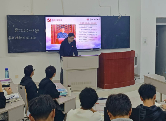 10月27日晚,宣城校区党校第28期预备党员5班以“用声音传递信仰——弘扬伟大抗战精神”为主题,走进25级软件工程1-4班、智能科学与技术1-2班,为新生们带来了一场沉浸式、互动式的宣讲活动,让伟大抗战精神在青春校园中落地生根、薪火相传。