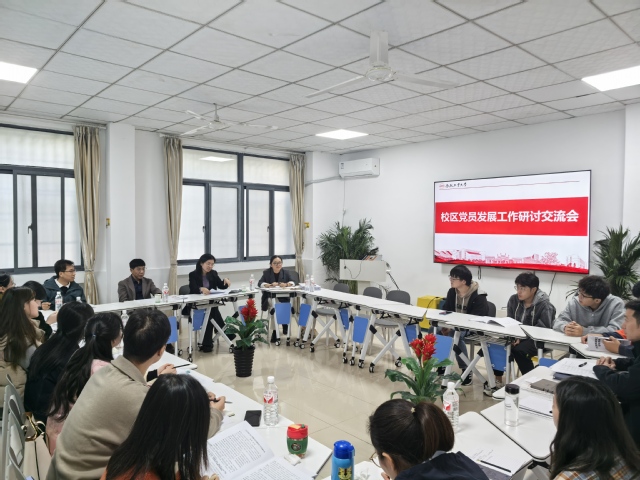 活动现场,学生工作办公室学生党建与思想政治教育科科长吴玉兰就校区学生党员发展工作做了培训,校区团委书记、学生工作办公室副主任徐姗姗就下一步学生党员发展及培养工作规划进行了布置,与会人员就持续优化学生党员发展环节、提升学生党员培养质量进行了研讨交流。