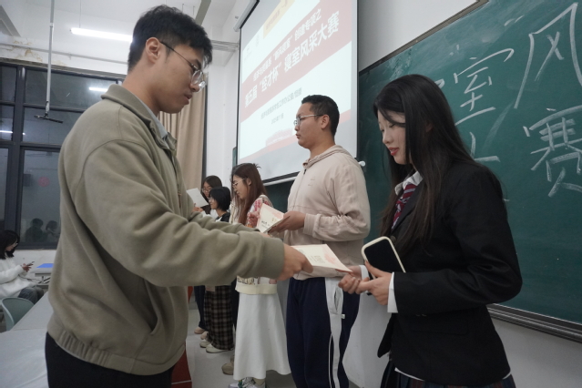 1111日晚,经济与贸易系第五届“经才杯”寝室风采大赛决赛在敬亭学堂206举行,七支入围决赛的寝室队伍同台竞技,经济与贸易系学生工作办公室主任兼团委书记王孝芳老师、经济与贸易系辅导员周卓然老师以及系内同学共同参与活动。
