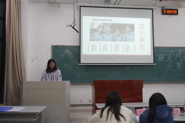 主持人公布了七支队伍的答辩顺序,随后各寝室队伍依次上台,通过PPT展示与Vlog分享的形式开展风采答辩,从寝室文化氛围、日常相处模式、特色集体活动等方面,生动展现了各自宿舍的温馨日常与积极风貌。