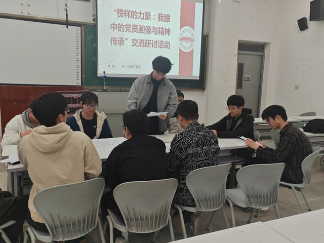 为强化党性修养,切实引导预备党员坚定理想信念、践行初心使命,2026年4月3日下午,机械工程系预备党员班分三批次开展“榜样的力量:我眼中的党员画像与精神传承”主题交流研讨活动,全体学员认真参与,在研讨交流中锤炼品格、汲取奋进力量。